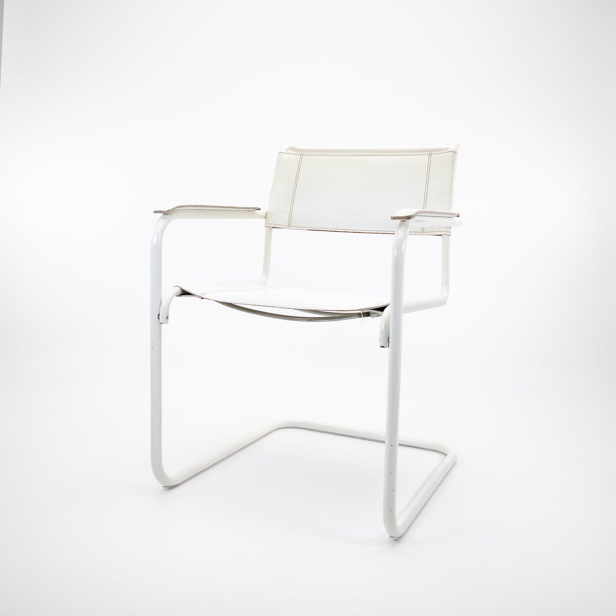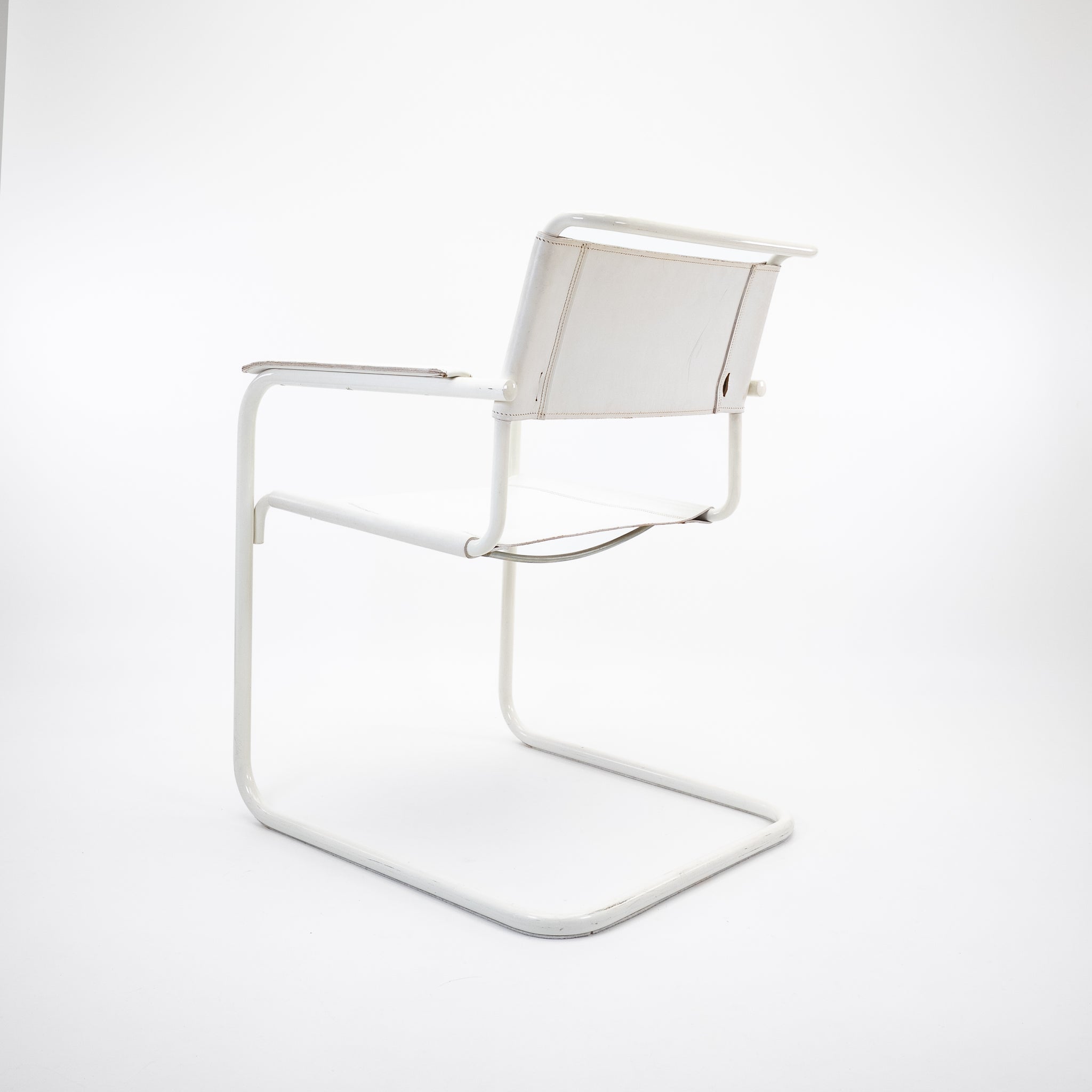 Der S 34 von Thonet ist ein ikonischer Freischwinger, der die klare Formensprache des Bauhaus mit moderner Eleganz verbindet. In dieser Ausführung mit weiß beschichtetem Stahlrohrgestell und weißem Leder wirkt der Klassiker besonders reduziert, leicht und zeitgemäß.